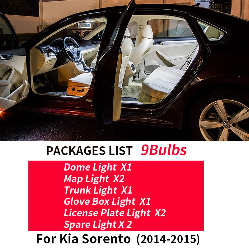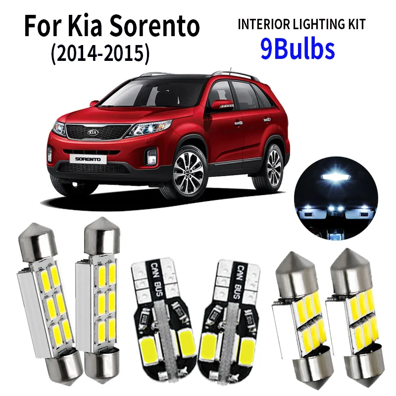 discount 9pcs Car Accessories White Interior LED Light Bulbs Package Kit For 2014-2015 Kia Sorento T10 31MM