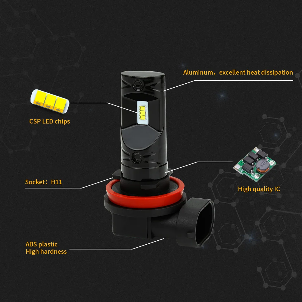 Ideal Zdatt H11 H8 LED Car Fog Light Bulbs H4 H1 H9 H16 9005 9006 H102800Lm 6000K White Auto Foglamp 2Pcs