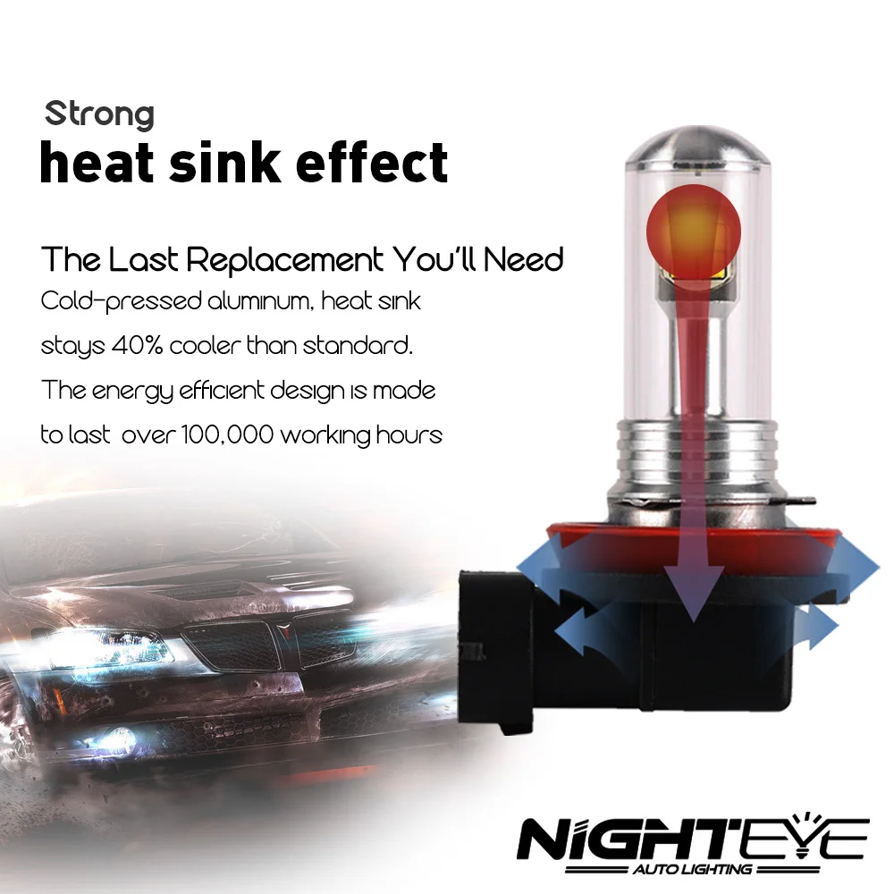 wonderful NIGHTEYE H11 LED Fog Light Bulbs H1 H3 H7 9005 9006 H8 H9 HB3 HB4 Car Fog Lamp 160W 1500LM 6000K Au